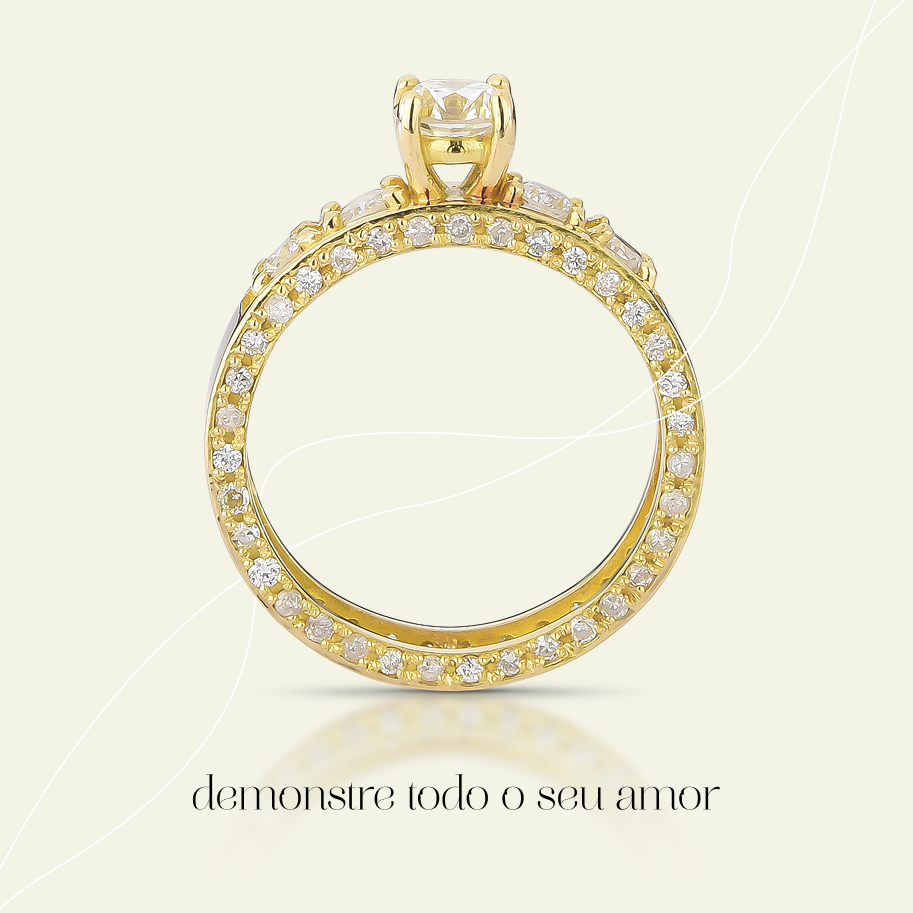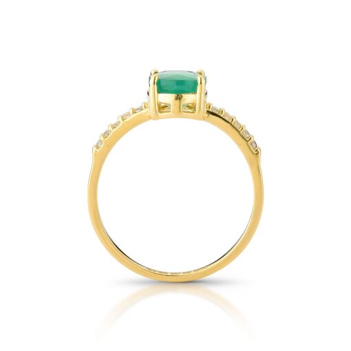 Anel com Esmeralda e Diamantes em Ouro 18k
